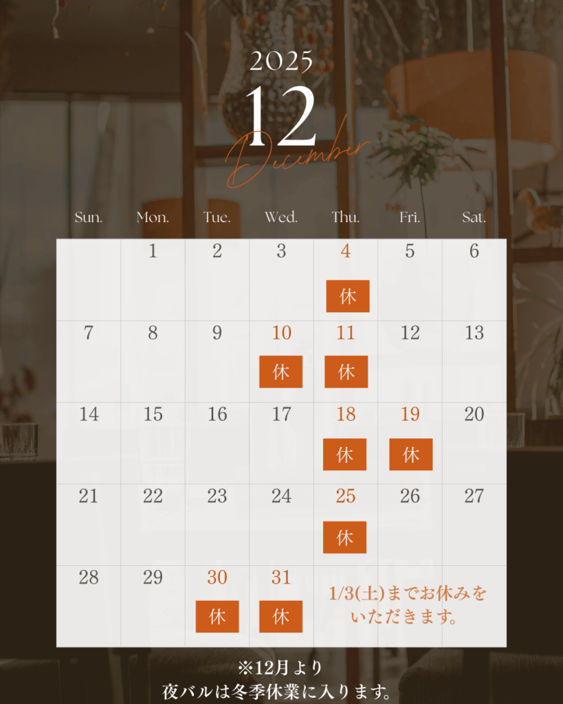 夜バルは2025年12月~冬季休業とさせていただきます。
